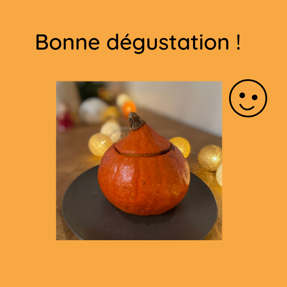 - Servir bien chaud en disposant la citrouille sur la table, accompagnée d’une salade verte, effet garanti !